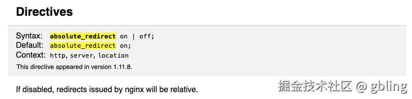 当请求访问的是目录,而又没有主动在URL带/时,Nginx会加上/并返回让浏览器重新请求一次,这时候重定向的Location可能与预期不符。