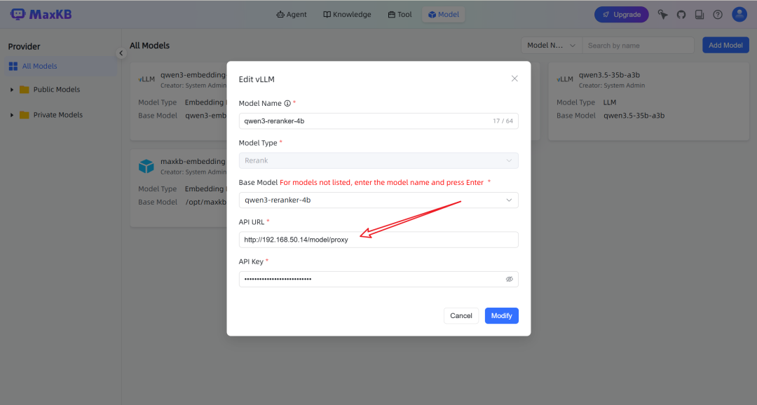 其中 qwen3-reranker-4b 需要开启 通用代理(Generic Proxy):