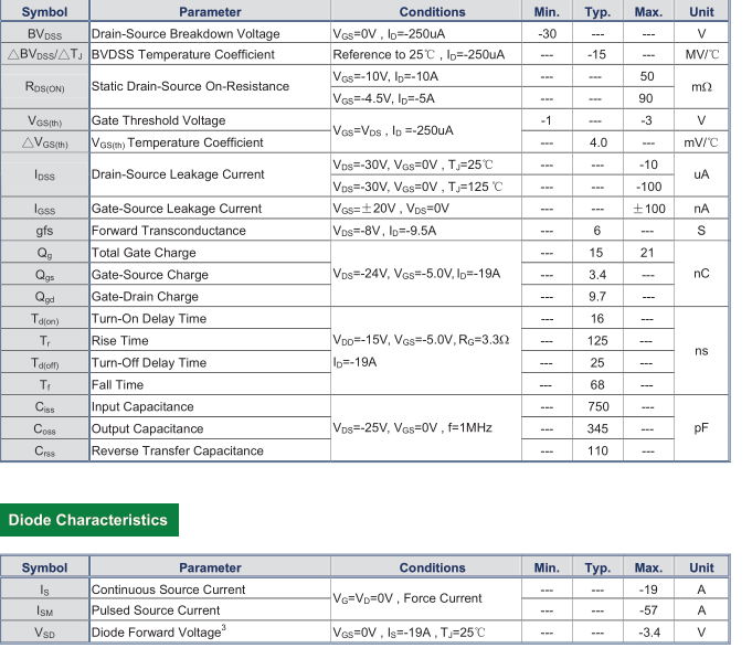 | 漏源电压 (Vdss) | -30V | 耐压,适用于低压电源系统 |