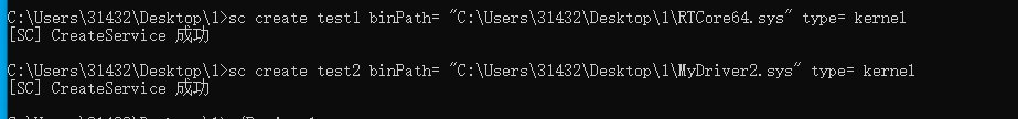 可以看到我们能运行 test1服务,却无法运行 test2服务,这是应为 test2服务指向的驱动是我们自己写的,没有微软签名。