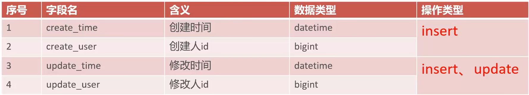 如下表所示的公共字段在用户表和菜单表都存在