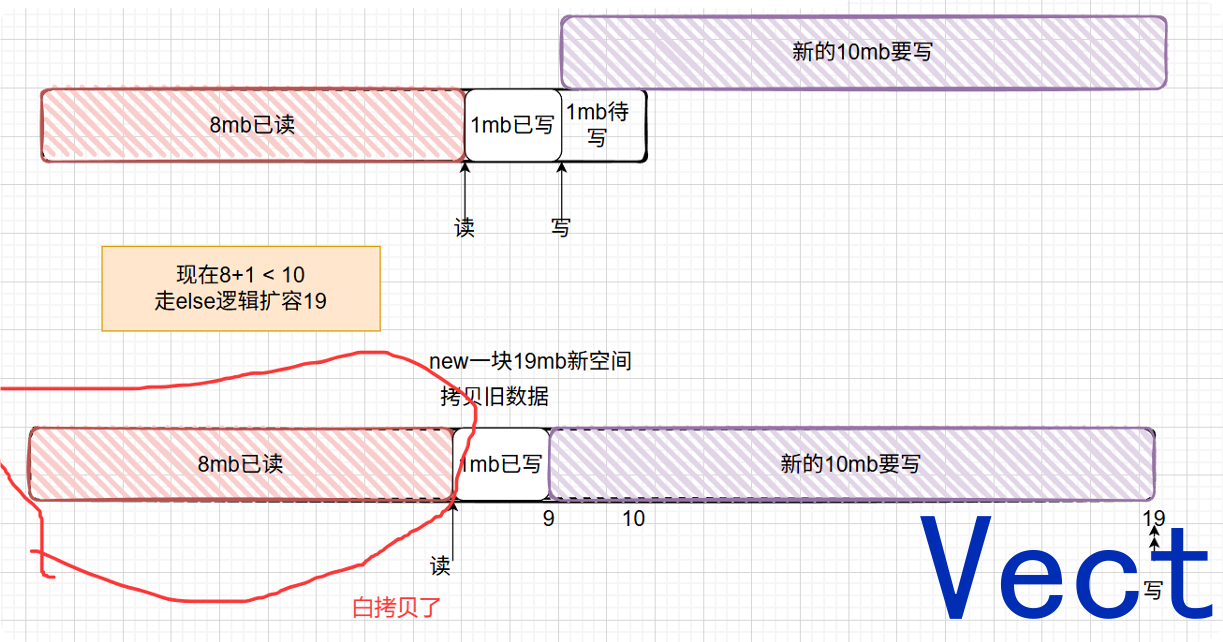 std::copy把有效数据挪动到索引0处- 移动后尾部还不够装新数据,才调用