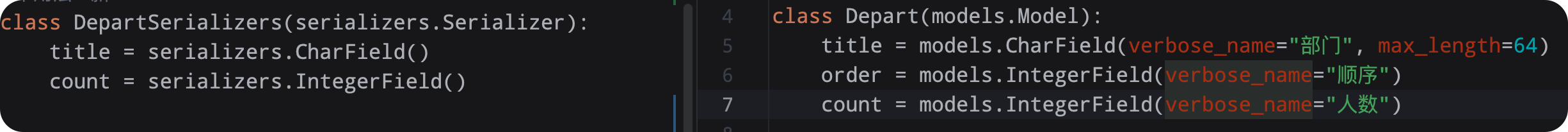 | 深度支持 | 支持多级,如 creator__depart__title |