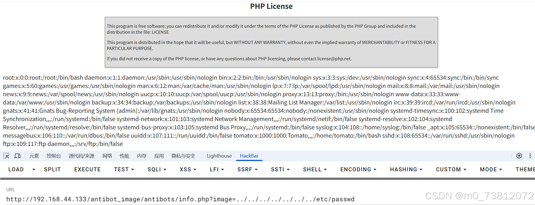 输入连接:http://192.168.44.133/antibot_image/antibots/info.php?image=.../.../.../.../.../.../var/log/auth.log