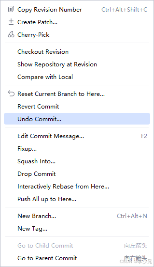 | 撤销最近提交 | 右键 → Undo Commit | 同上 |