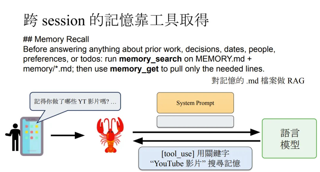 值得注意的是,Agent-to-Agent 是基于 Session 的,但我们前面说过 Session.jsonl 是短期记忆,所以为了避免遗忘,我们还需要在 AGENTS.md 中进行长期记忆。