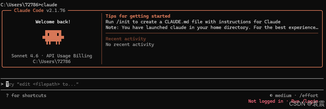 打开命令行,执行命令npm install -g @anthropic-ai/claude-code
