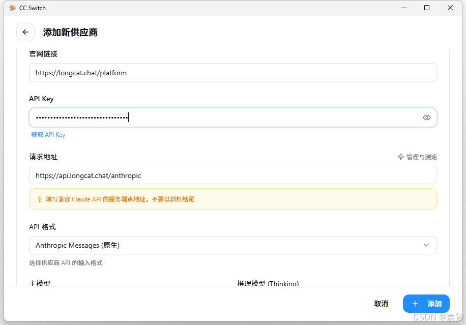 目前国内的大模型比较多,像智普,千问,美团等等,这里只列举一下美团的LongCat ,其他的平台都可以,根据需要配置:https://longcat.chat/login?countrycode=86&countryname=China&callback=https%3A%2F%2Flongcat.chat%2Fplatform