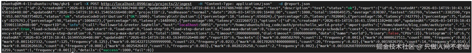 ghz:主程序,负责执行压力测试,向你的 gRPC 服务发起请求,并收集性能数据。ghz-web:可视化工具,负责将ghz生成的测试结果数据,以更友好、更直观的图表和表格形式在浏览器中展示出来。