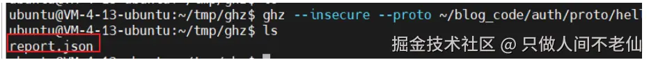ghz --insecure --proto ~/blog_code/auth/proto/hello_world.proto --call helloworld.Greeter.SayHello -d '{"name":"world"}' -c 1 -n 1000 localhost:50051 -O json -o report.json