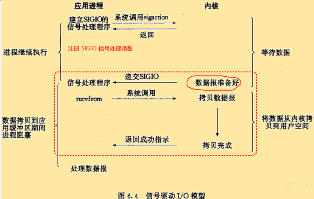 - 1 设置好对SIGIO的信号处理函数,等有数据来了,内核会给进程发信号,进程收到信号后,再去做读取操作,不需要一直等也不需要轮询