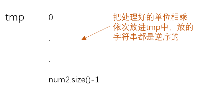 num1和num2都要逆序,若num1和num2都逆序了,那么单位相乘的结果刚好可以放在tmp[i+j]的位置,且是+=,最后将处理后的字符逆序即可