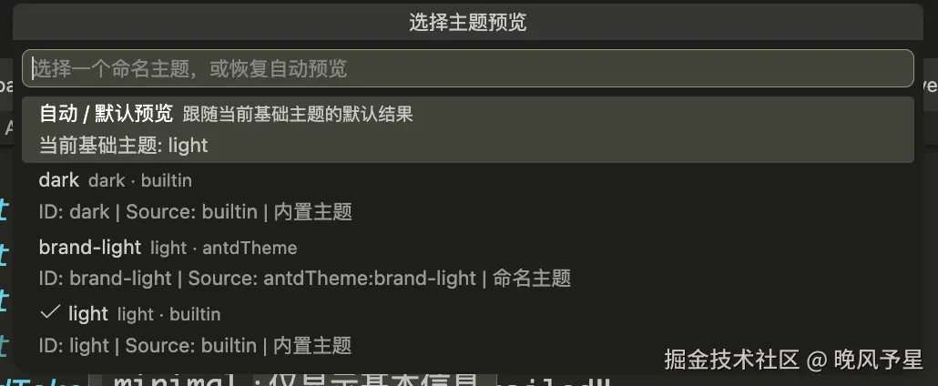 就可以直接切换到某一个命名主题,或者恢复自动 / 默认预览。