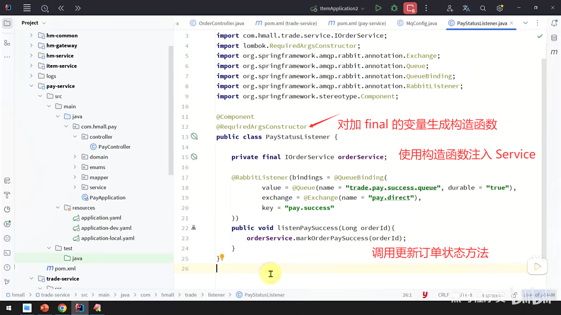 - 场景实战:以"支付成功后更新订单状态"为例,演示如何将传统的同步 Feign 调用改造为基于 MQ 的异步通知。