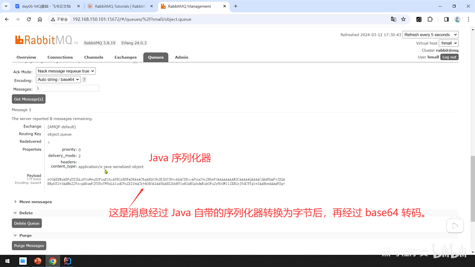 @Bean声明与@RabbitListener注解声明的优劣,解决多参数绑定的繁琐问题。 - 消息序列化 :针对 JDK 默认序列化存在的"体积大、不安全、可读性差"痛点,实战配置 JSON 序列化 转换器,提升消息传输的效率与可读性。