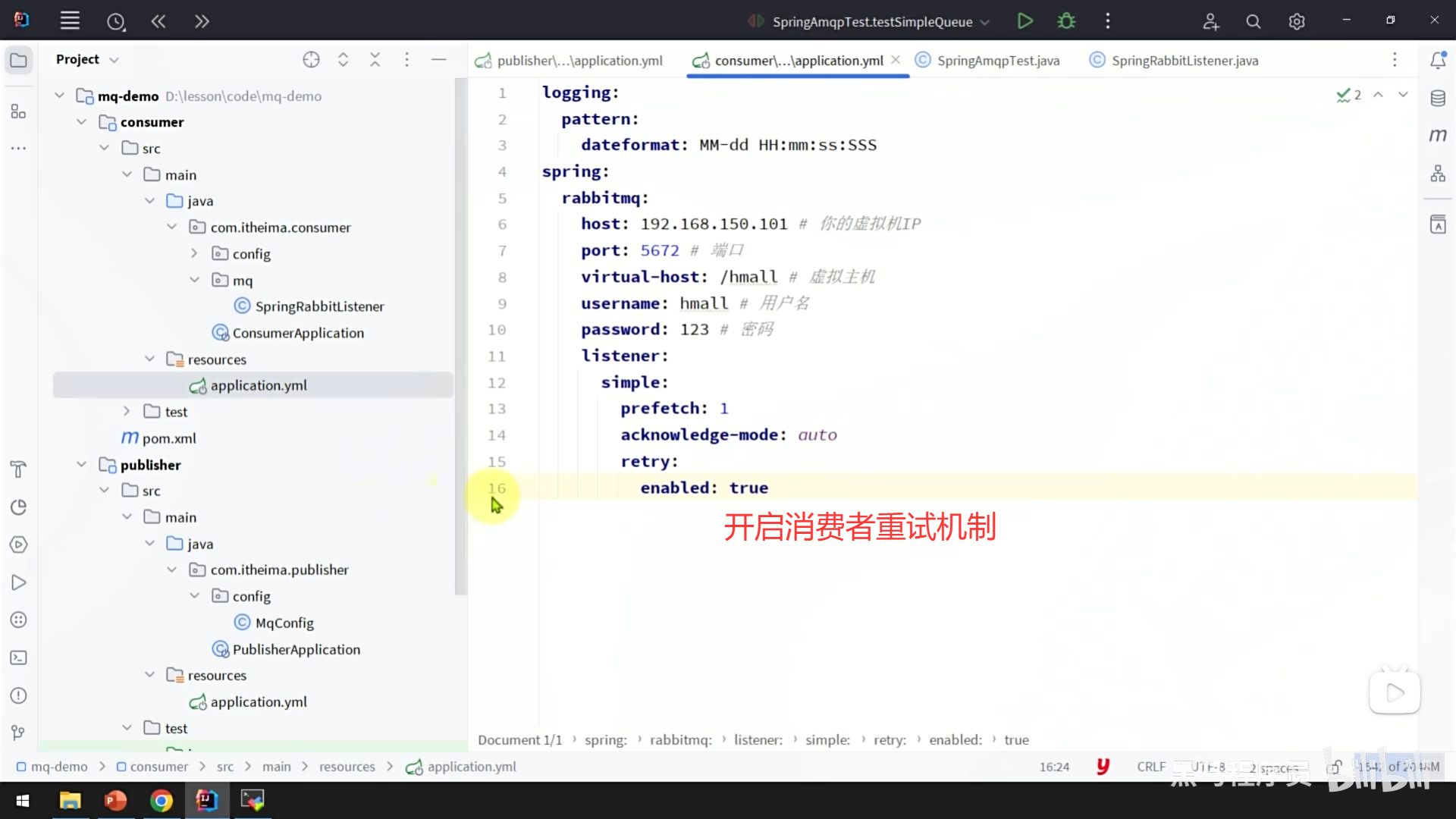 - 源码与配置:结合 Nacos 配置中心管理 MQ 地址,利用 Docker 快速部署 RabbitMQ 环境,提供可复用的代码片段与配置文件。
