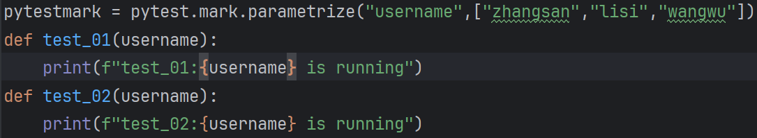 pythondef test_01(username): print(f"{username} step1") print(f"{username} step2")在上面这段代码中,要想确保username是变化的,就要对其进行输入,但是自动化测试是不能输入的,所以我们引入了参数化这个概念,那么参数化具体是怎么操作的呢?