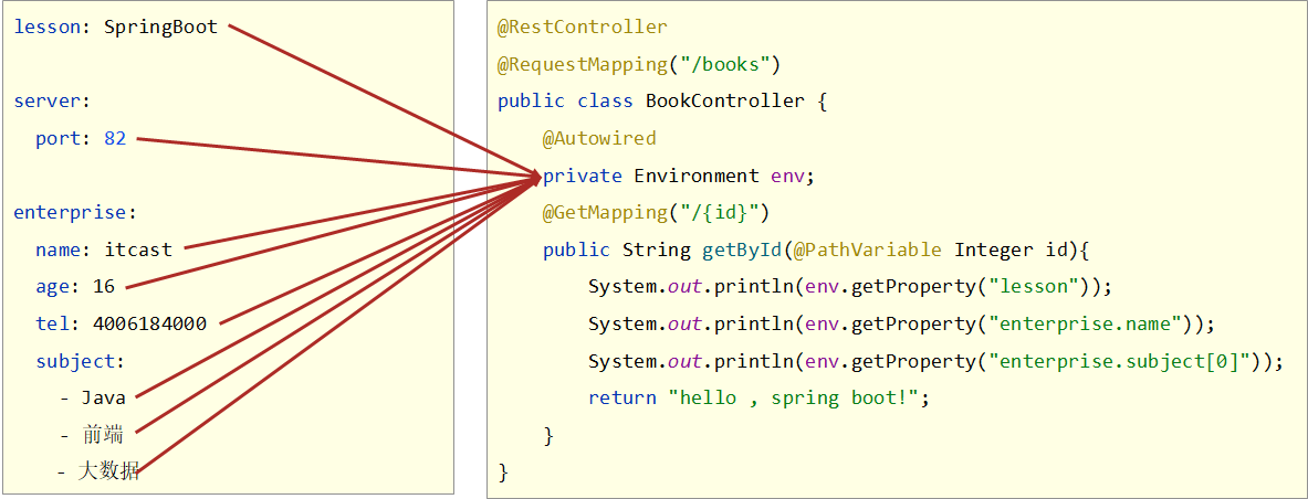 注:配置文件间的加载优先级 properties(最高)> yml > yaml(最低),不同配置文件中相同配置按照加载优先级相互覆盖,不同配置文件中不同配置全部保留