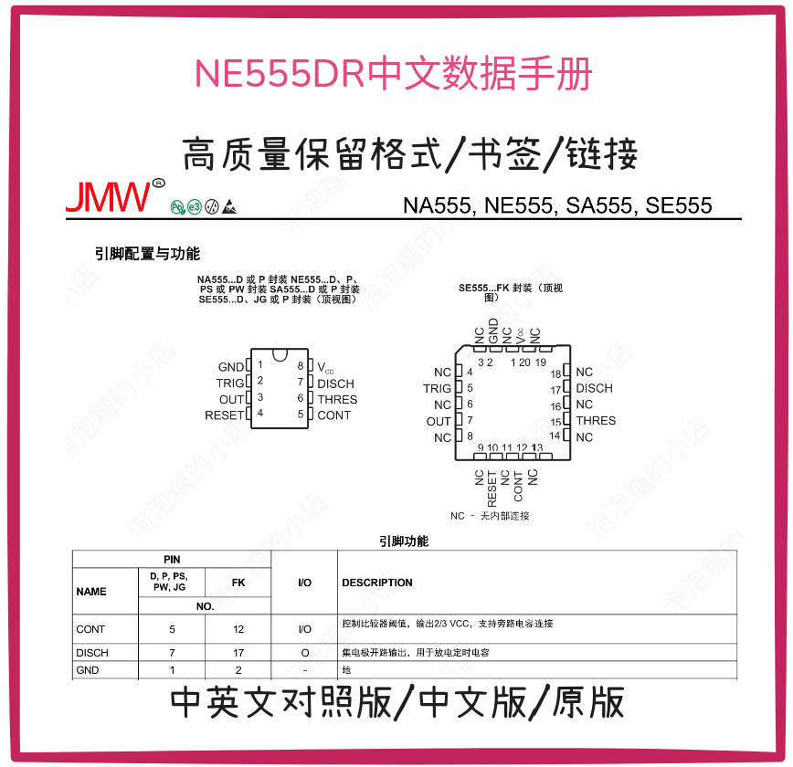 已完成UMW NE555DR 经典定时器官方数据手册的完整汉化,主要特性: