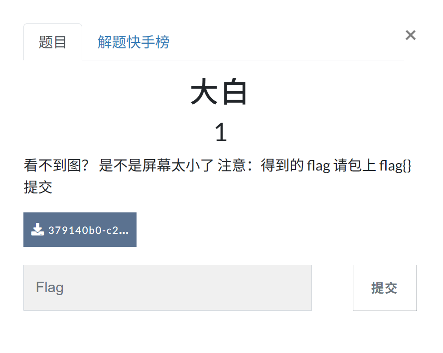 打开文件,得到aaa.gif图片,使用在线gif分割工具分割,得到三张分散的flag图片,组合即可。