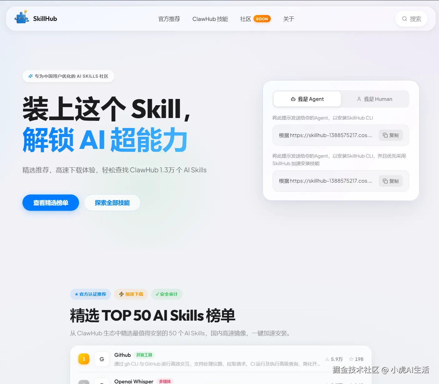 SkillHub 不是另起炉灶的技能库,而是面向中国用户的优化层。
