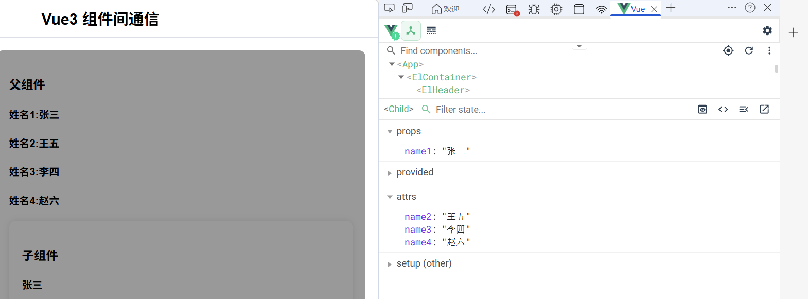 - 那如果我子组件只接受一个,其他三个跑哪里去了呢?因为归根揭底我父组件确实传给你了,我们使用vue扩展找找看在哪里