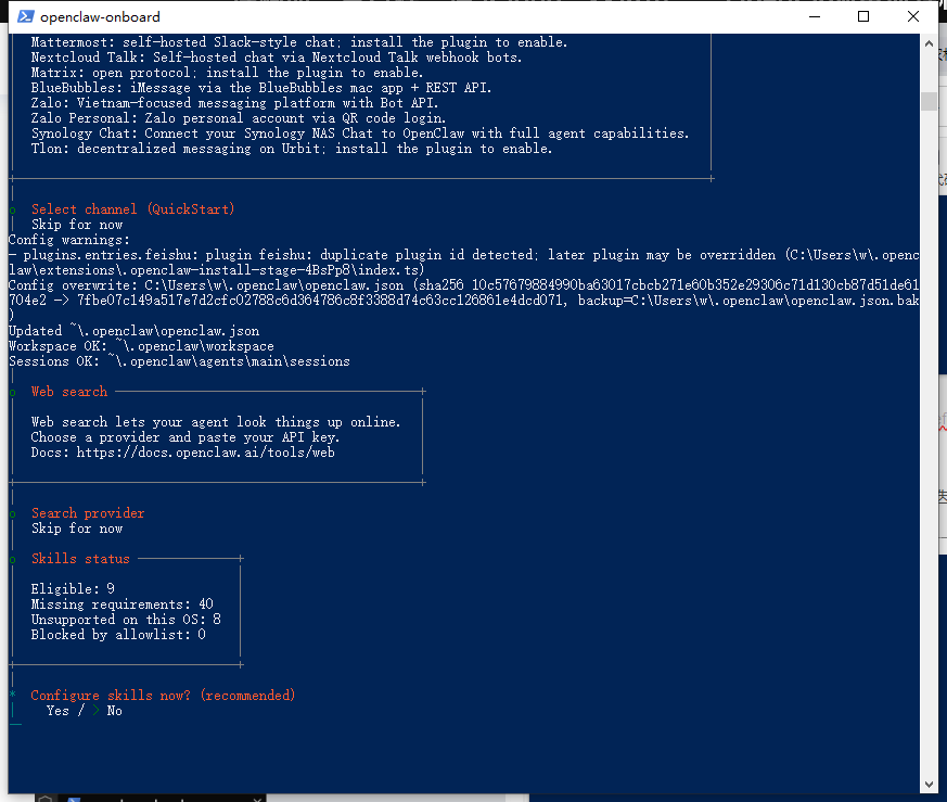通讯工具和skills可以先跳过,后期再使用过程中根据需要迭代。