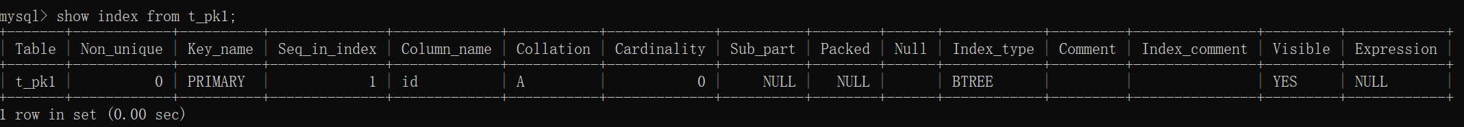 - Index_type:索引类型(BTREE、HASH、FULLTEXT 等,InnoDB 通常为 BTREE)。
