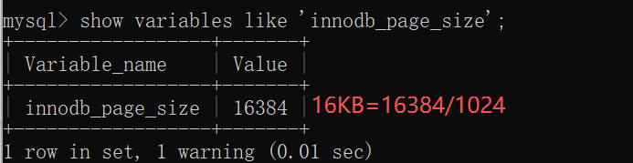 - 每⼀个页中即使没有数据也会使用 16KB 的存储空间。查看页的大小,可以通过系统变量 innodb_page_size 查看