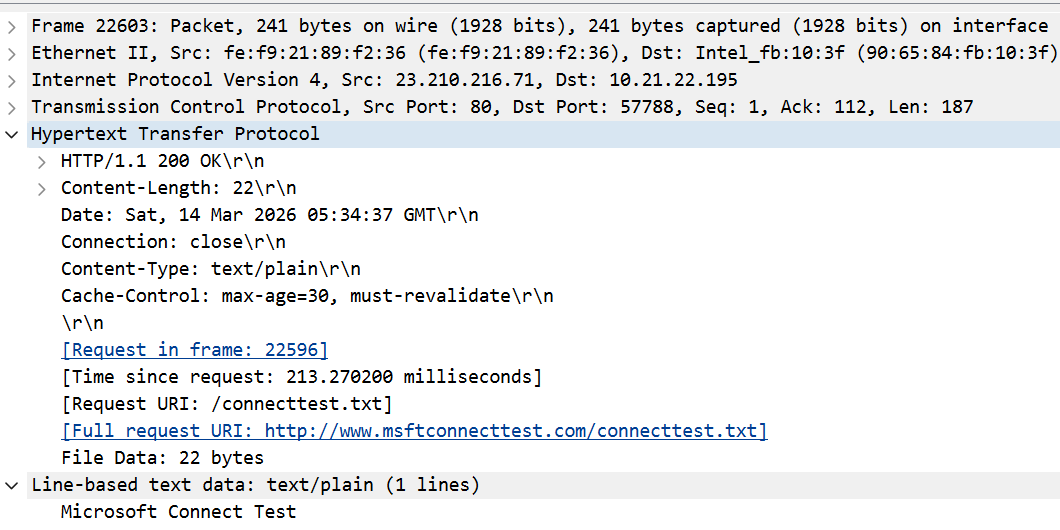 File Data: 22 bytes:Wireshark 提示这里有 22 字节的数据。