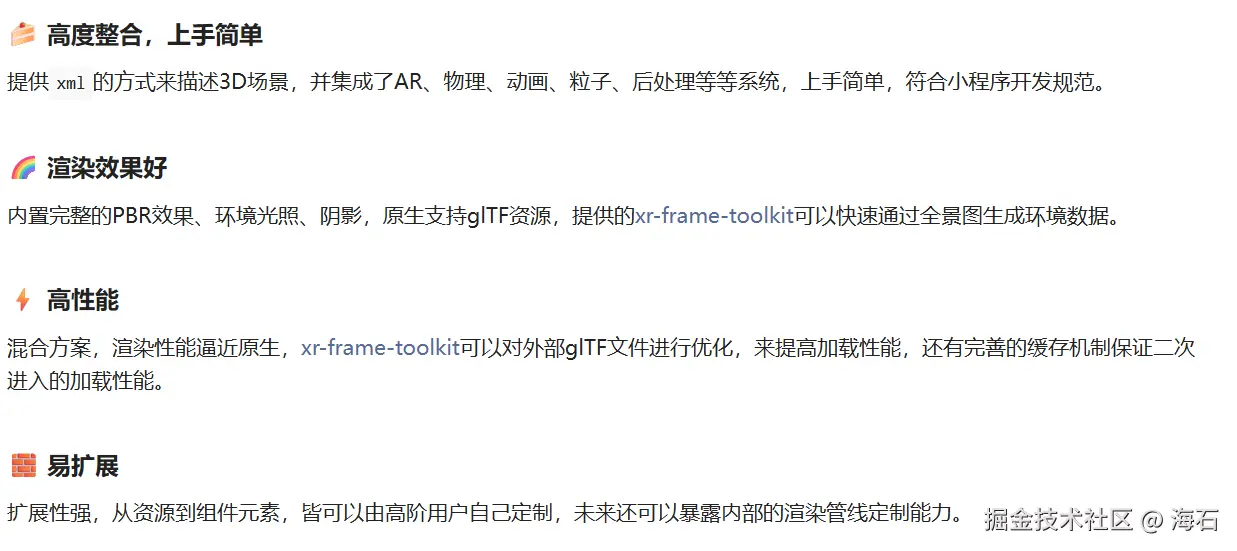 最近要基于微信小程序实现一个具备AR功能的APP,在进行技术选型时,发现小程序本身自带了XR-FRAME这个框架,