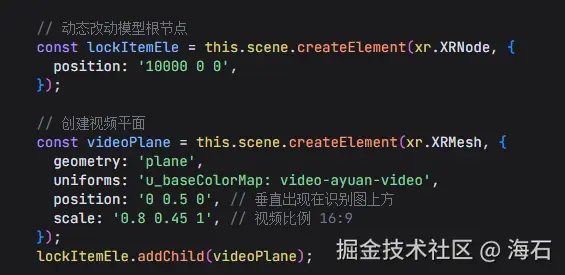 我期望将原来的模型换成视频,这时候就可以利用Tare基于工程上下文去帮我们实现,同样运行demo工程 找到应用视频的页面,定位到源码位置