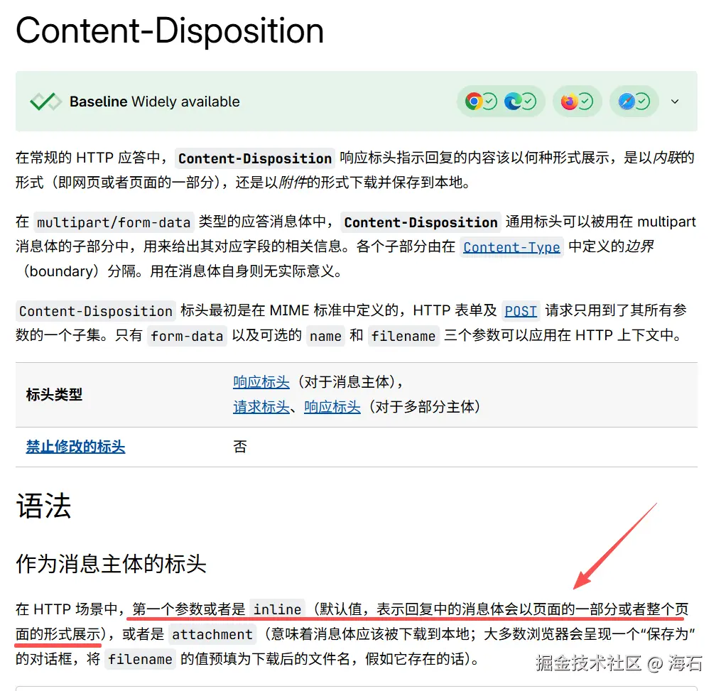好奇的同时去学习了一下,发现是 Header 的问题, 我们设置 Content-Disposition 为 inline 即可实现网页预览了