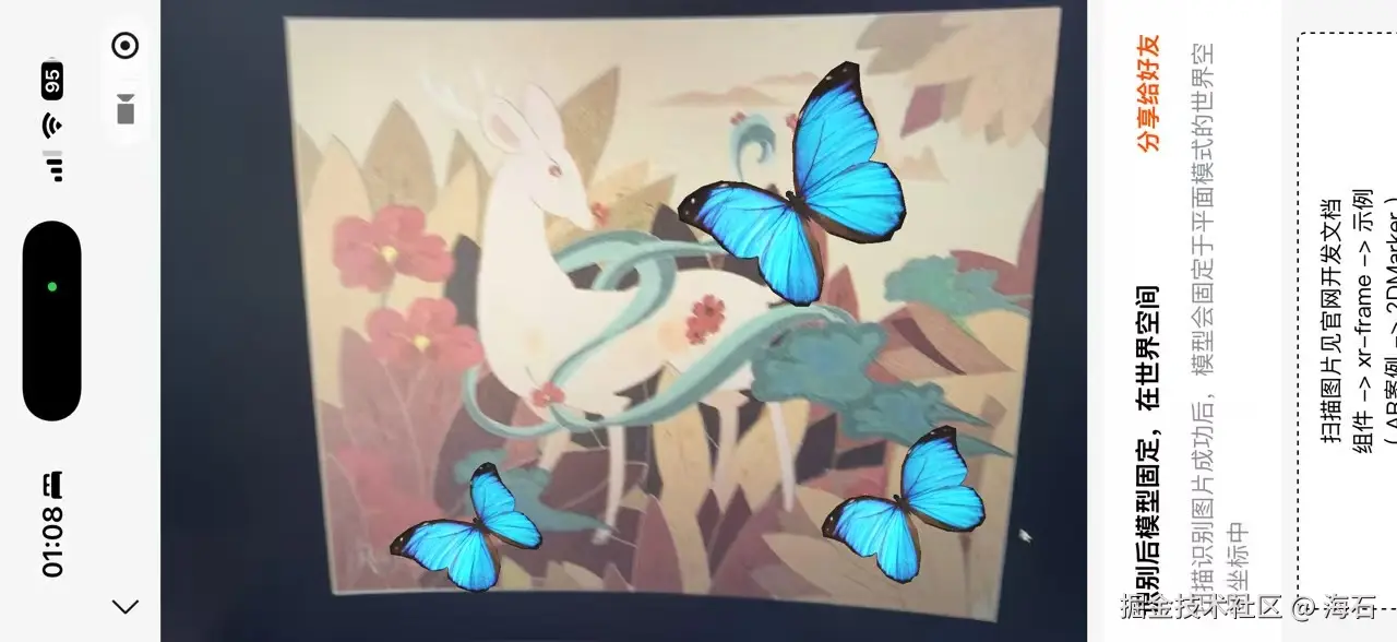 扫描具体的某一张图片(鹿的图片),然后出现自定义元素(蝴蝶)
