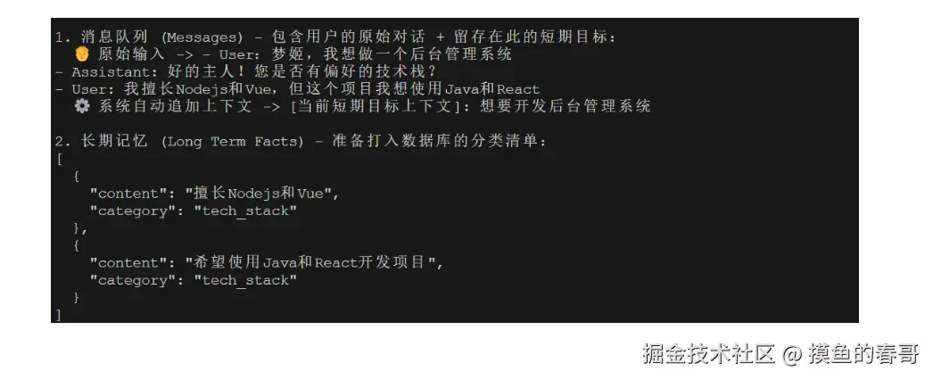 # 长期记忆事实队列(如偏好、技术栈),模拟后续存入 ChromaDB