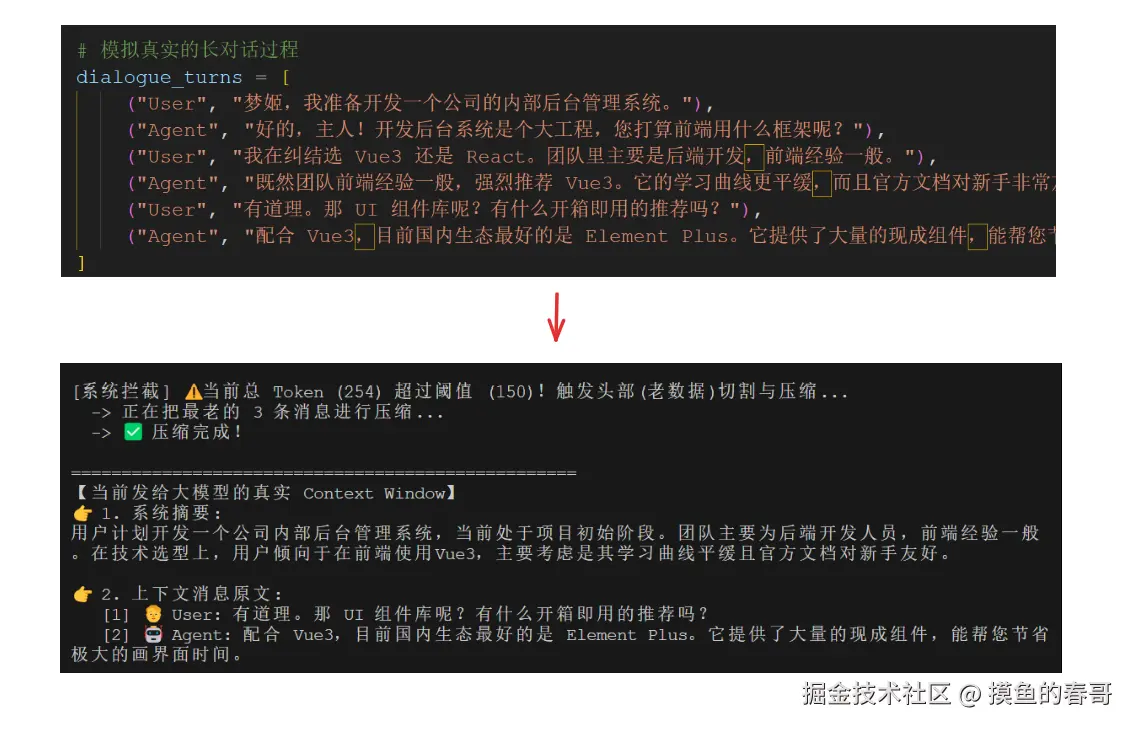 然后,把 安全范围内的 10K Token和【压缩后的记忆】拼装到一起,形成新的上下文 Messages。