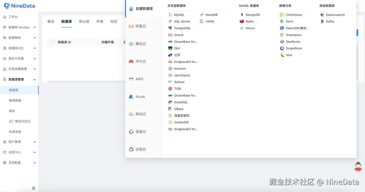 NineData 是一个多云数据管理平台,集成了数据复制、数据对比、数据备份、数据 DevOps 四大块