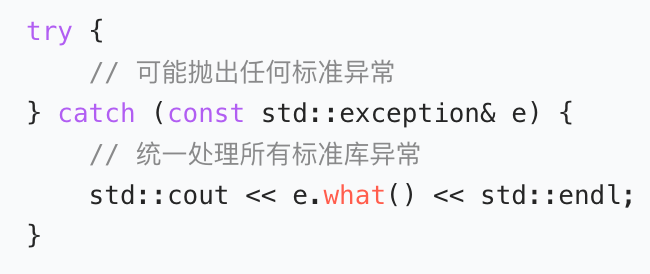 异常是C++用于处理运行时错误的专用机制,通过抛出-捕获模型分离错误检测与处理逻辑,让程序在遭遇意外时不崩溃、可恢复,是编写健壮、安全的工业级代码的基础能力.