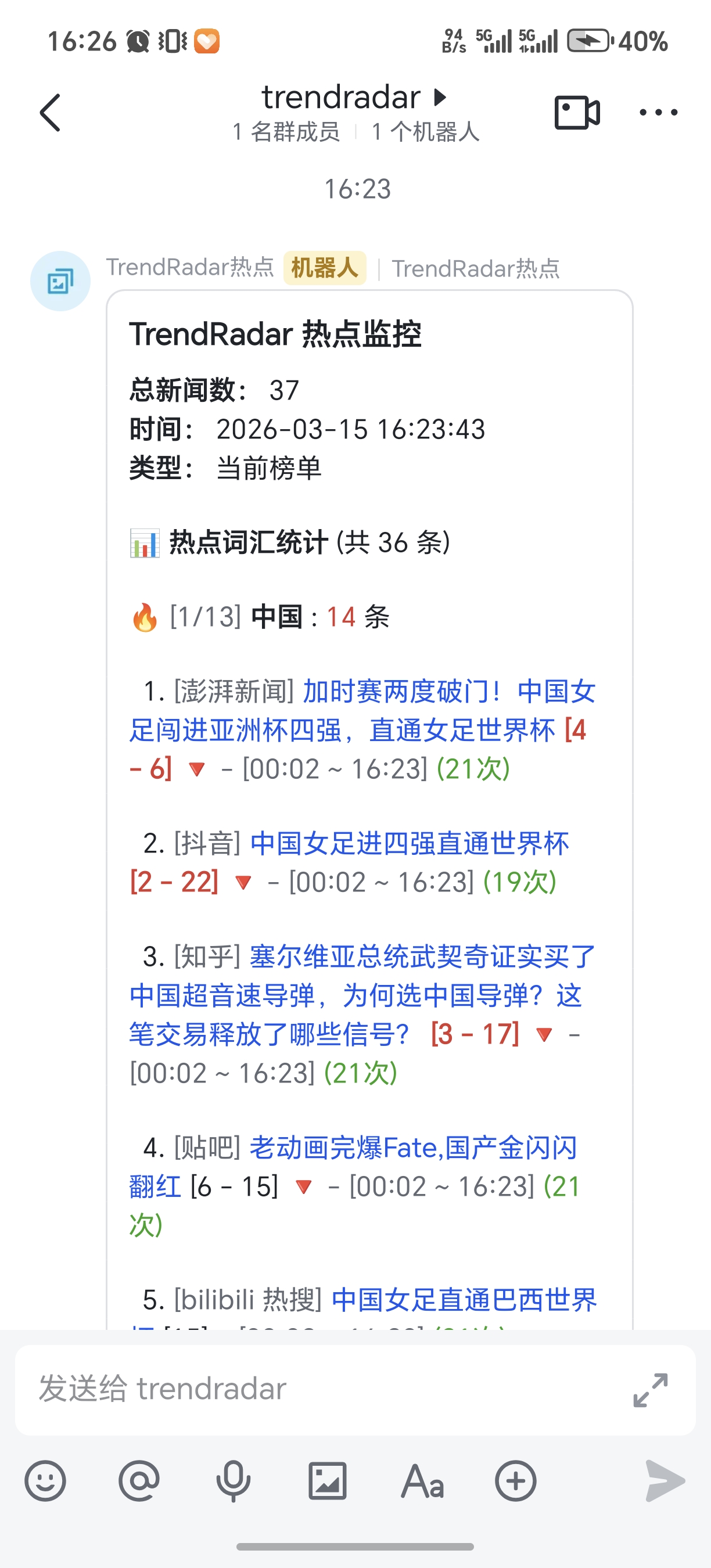 TrendRadar 是一款高实用性开源热点聚合工具,支持知乎、抖音等 11 个平台热点聚合,可通过 Docker 快速部署,配置飞书等多渠道推送。基础功能无需额外成本,能精准过滤无效信息,聚焦目标领域热点。