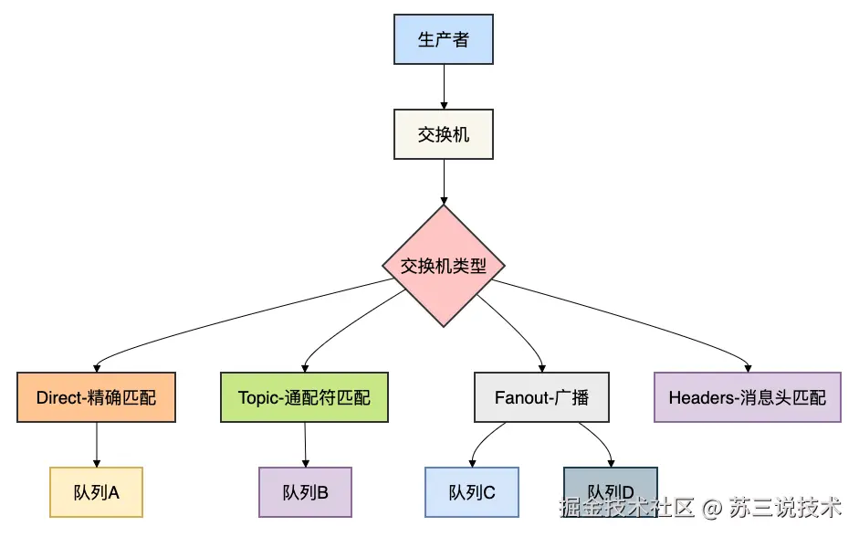 RabbitMQ的四种交换机类型: