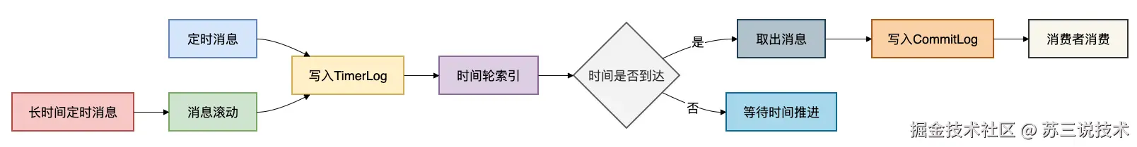 这种设计保证了即使消息延迟时间很长(如半个月),也不会丢失。