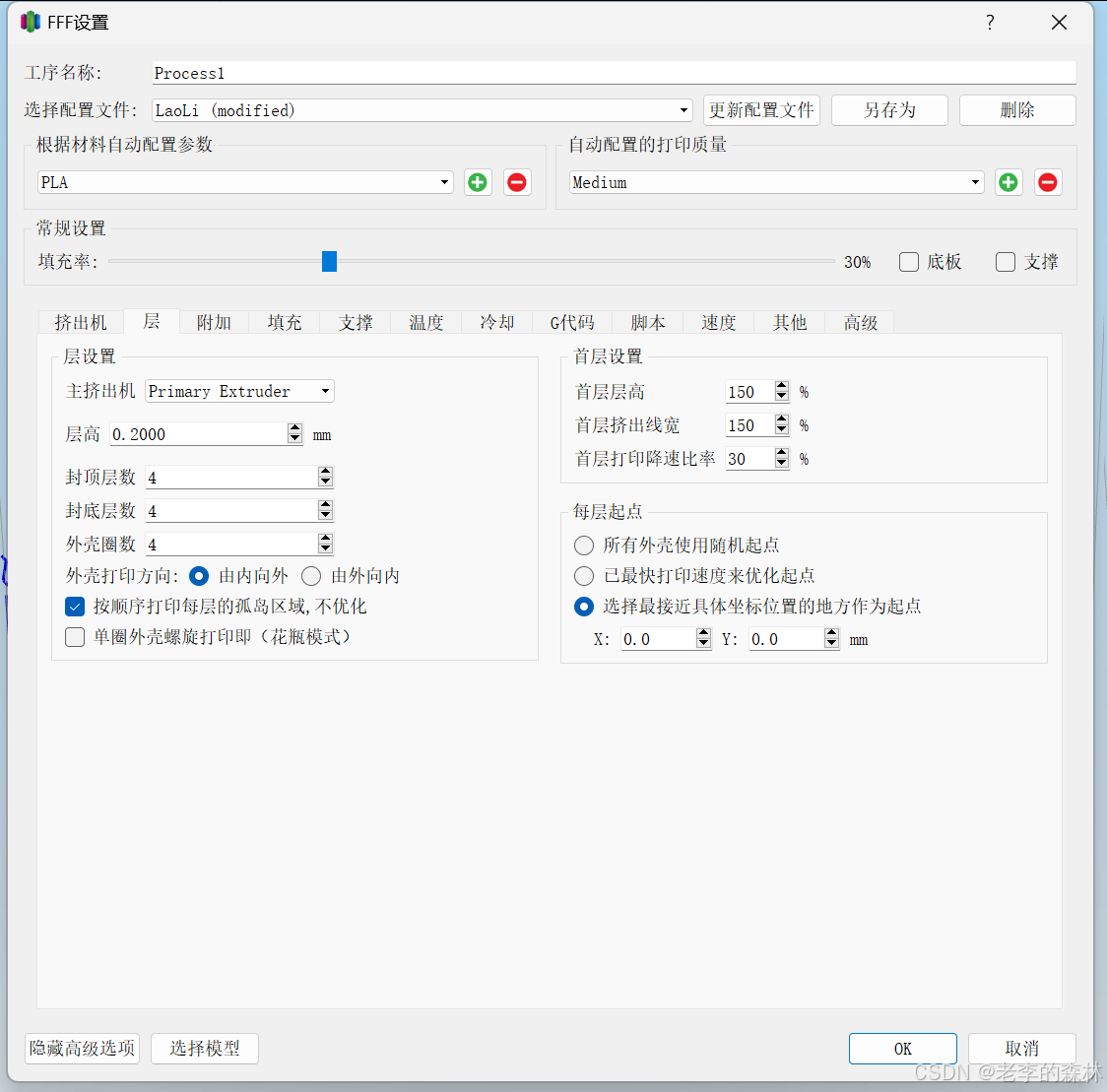 还有许多参数,如机器的最大打印范围,速度,喷嘴直径,耗材直径这些都是可以设置的。