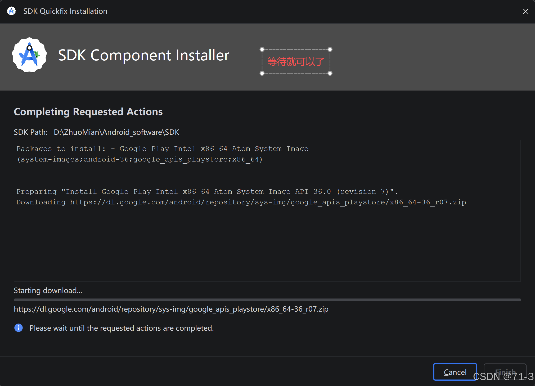 - 更改SDK的下载位置,建议更改到非系统盘,因为这个占了几个G