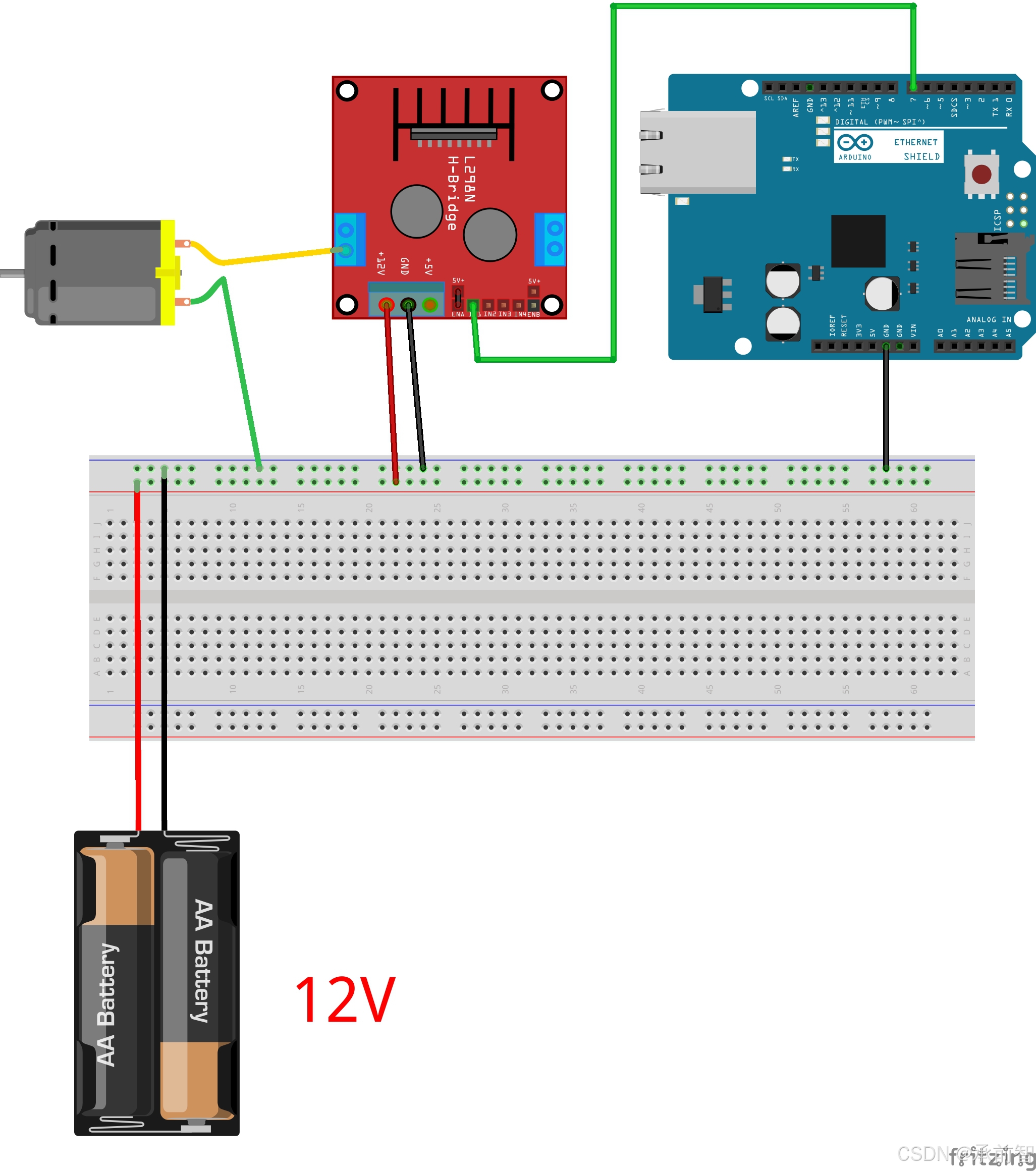 再进一步,若将电源引脚改为普通IO口,并将该IO设置为高电平输出(相当于提供3.3V或5V电压),另一端仍接GND,同样可形成电压差,驱动电机转动。