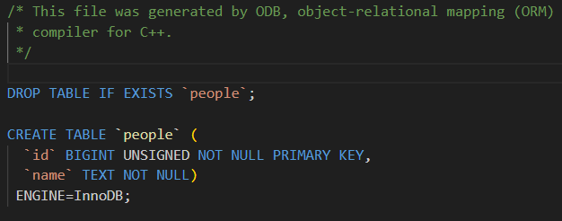 #pragma指令)告诉它这个类需要持久化。然后 ODB 会在 MySQL 中自动创建一张对应的表,表的列对应类的成员变量。 -