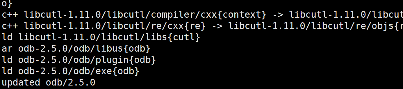 bpkg build odb@https://pkg.cppget.org/1/beta # 这里安装花了30分钟
