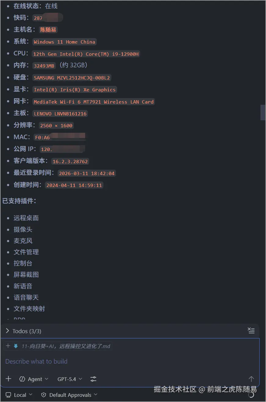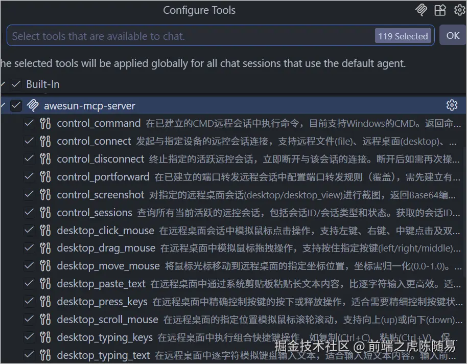 如图,原来向日葵MCP把远程桌面、摄像头、麦克风、文件管理、控制台、屏幕截图、新语音、语音聊天、文件夹映射、RDP等功能全部封装成了可供AI调用的工具。