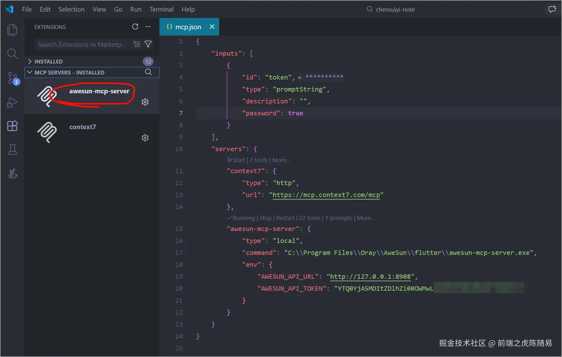 我个人最喜欢的AI工具组合是VSCode + Copilot,如上图,把向日葵的MCP配置放到mcp.json配置文件中,这里要注意的是,command要从数组改成字符串格式,才能生效,其他工具里面可以根据情况调整,因为大部分是支持数组配置的。