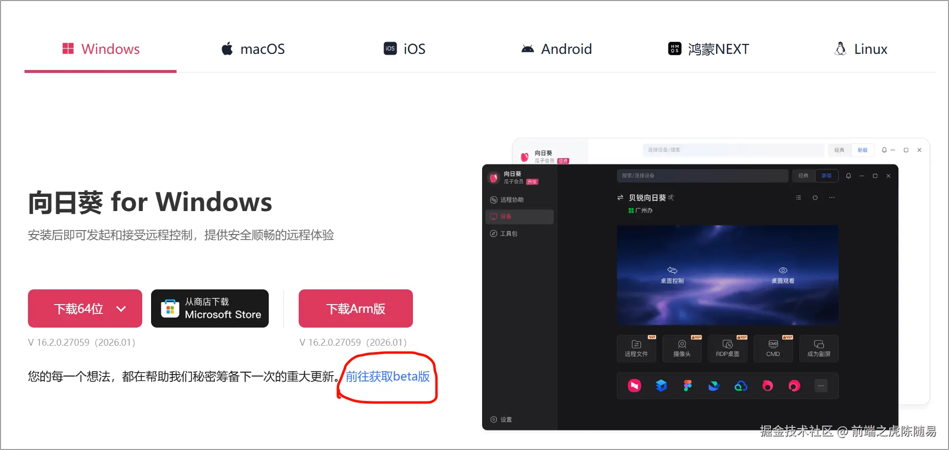 首先,在贝锐向日葵官网https://sunlogin.oray.com,下载最新个人Beta版本。