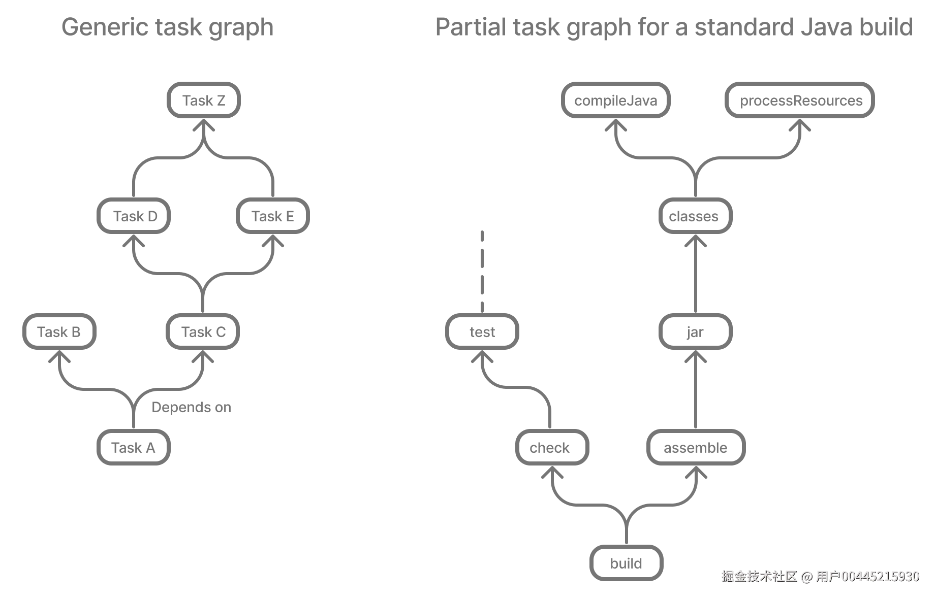 --build-cache参数可显著减少 CI 环境构建时间。测试表明,全量构建时间可缩短 40%以上。并行执行优化 :从 Gradle 4.0 开始,任务并行执行 成为默认行为,Gradle 会自动分析任务依赖图,并行执行独立任务,充分利用多核 CPU 性能。配合